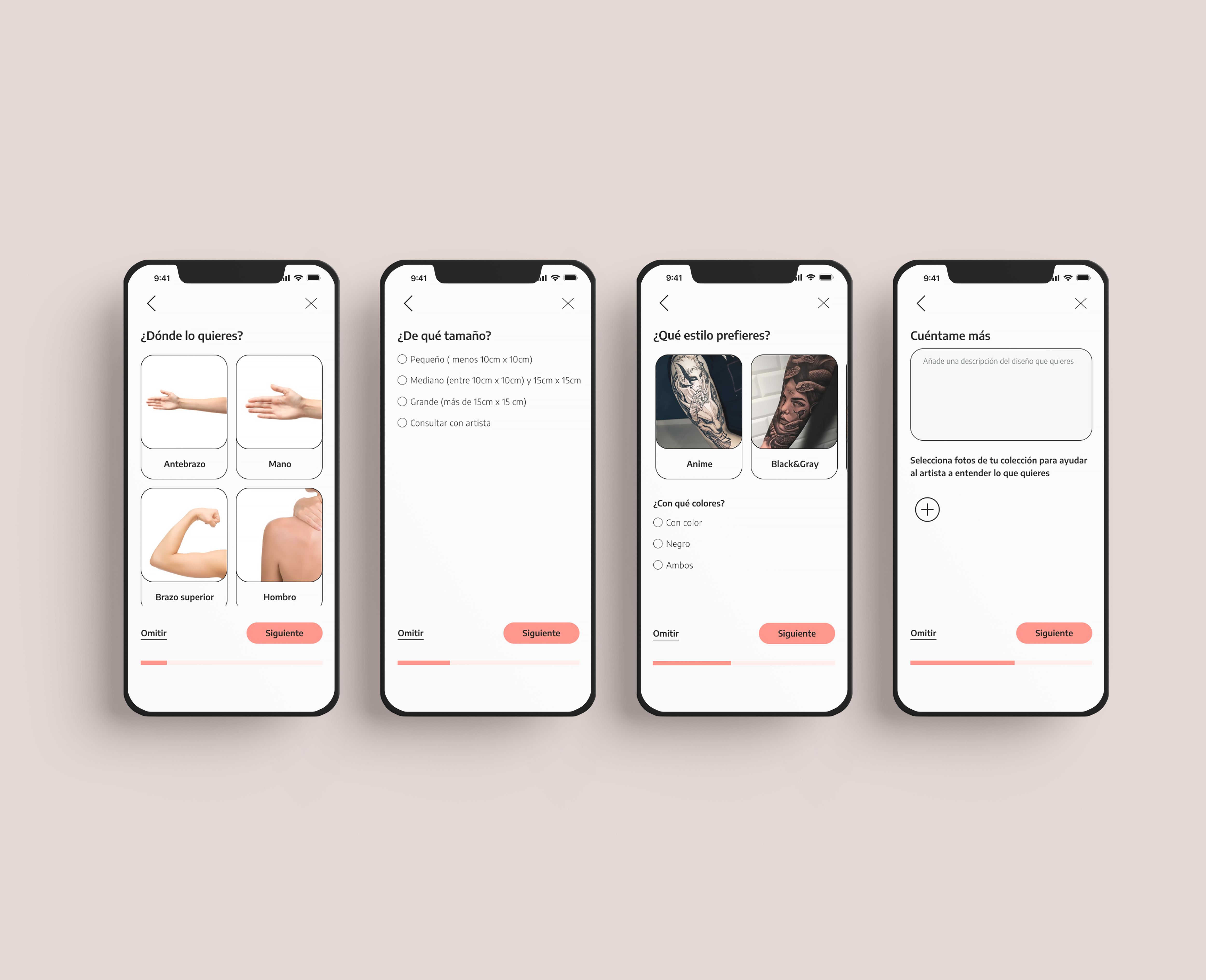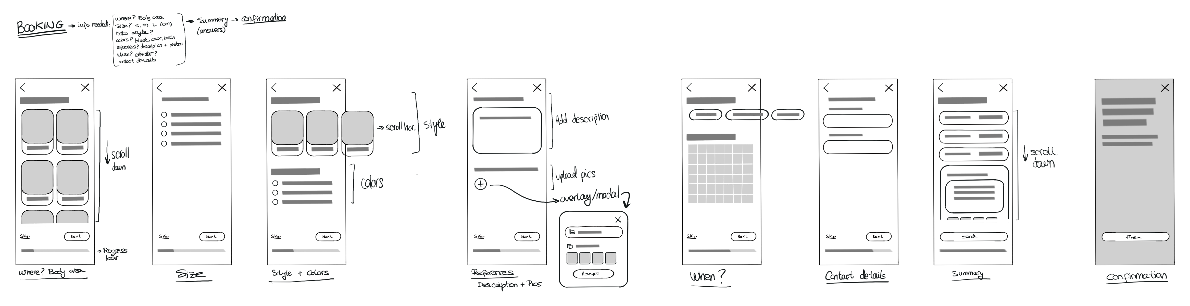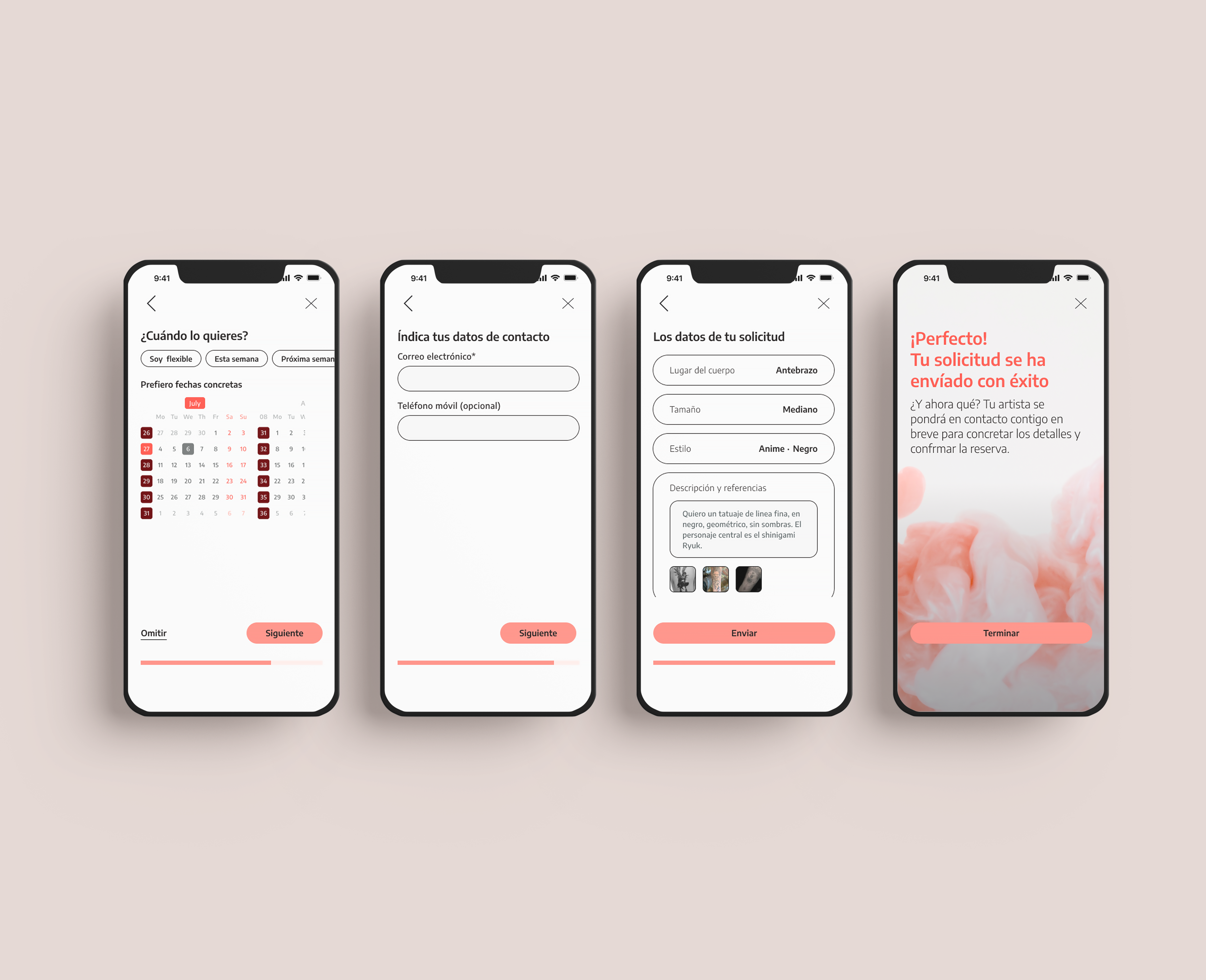 Through the booking form, tattooists are provided with the necessary information about the tattoo the client has in mind. It consists of a seven-step form that the user will fill in to book with an artist. To prevent errors and make the process easier for the user, a summary of all the information will be displayed at the end before sending it.