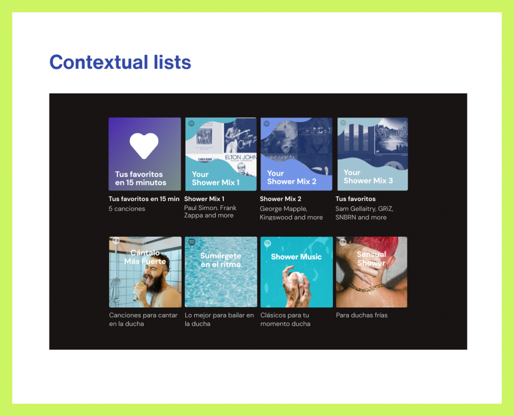 The contextual playlists are lists of about 15 minutes, based on the user’s preferences and designed to fit the duration of the shower process, from undressing to dressing.